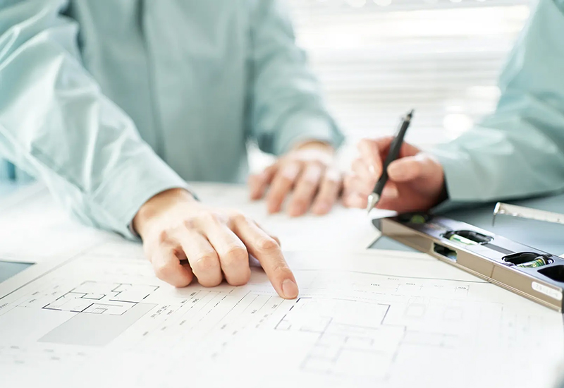 電気機器の配置や電気容量・配線ルートを考慮した図面の作成を行います。また、設計図面からの材料や配線の長さの拾い出しと、人件費・材料費を含む工事全体の費用の算出も行います。工事の品質やコスト、仕事の受注に直結する業務です。