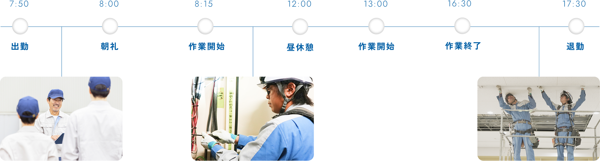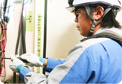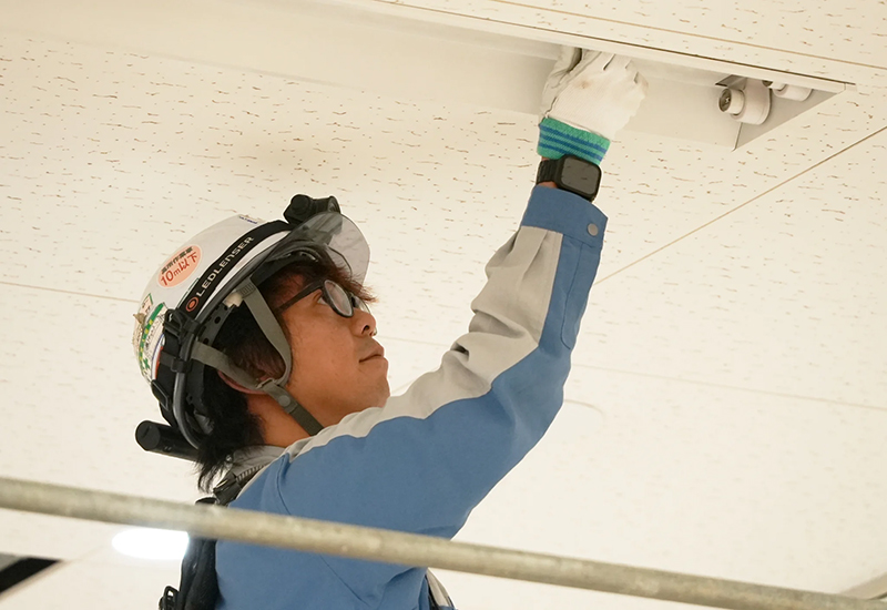 建設工事の中の電気工事や、お客様の施設内の照明、空調等の電気設備に関して点検・修繕・取り付け・配線を行うほか、工事に必要な設計・積算・施工管理まで行うことで暮らしのインフラを支えています。